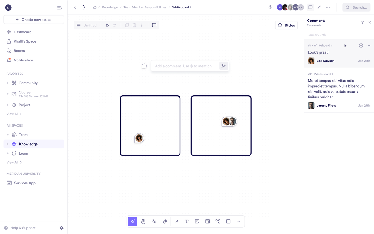-Centralized organization: Spaces help keep resources, tasks, and updates accessible and well-structured.